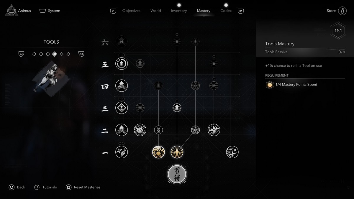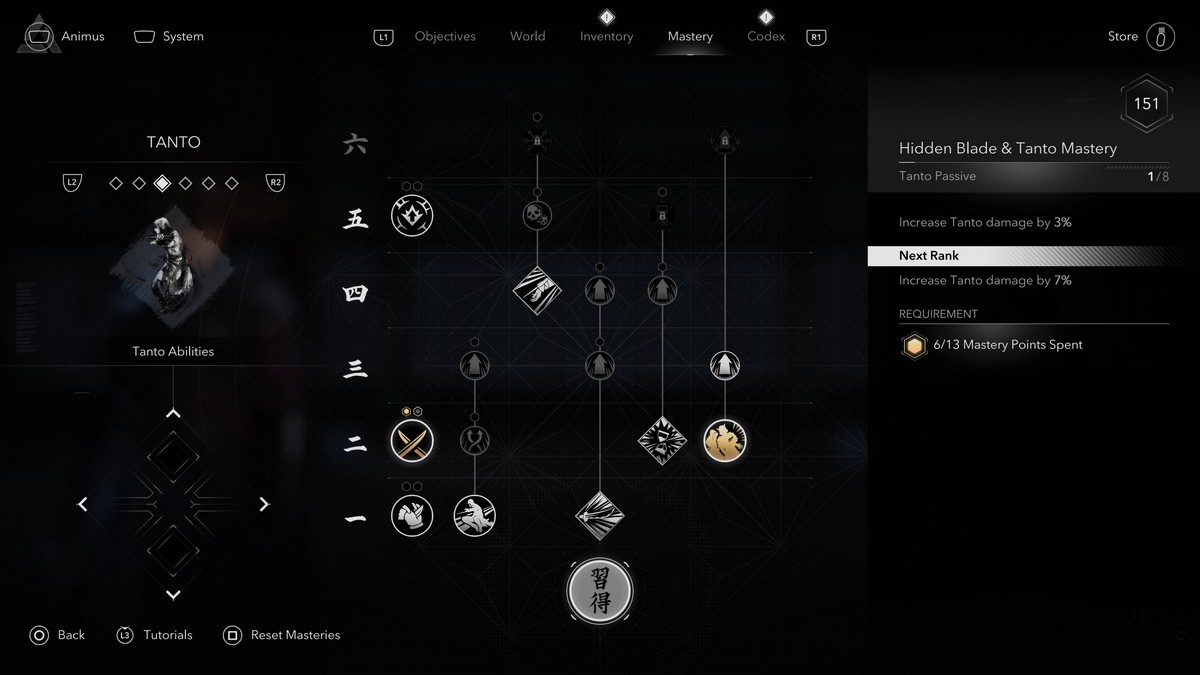 It’s all about amplifying damage with the tanto, and these skills will do just that with added damage and exploiting Vulnerable enemies. Even armored enemies will fear your sharp blade, and using your R2/RT attack to spin behind ensures you can always target the backs for more damage.
